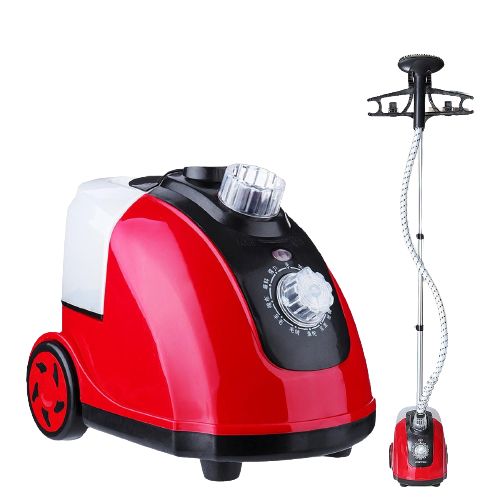 Вертикальный (напольный) парогенератор с телескопической стойкой для одежды. Доступны 9 режимов работы, скорость подачи пара 32 гр/мин, объем резервуара для воды 1,6 л. На корпусе есть колесики.