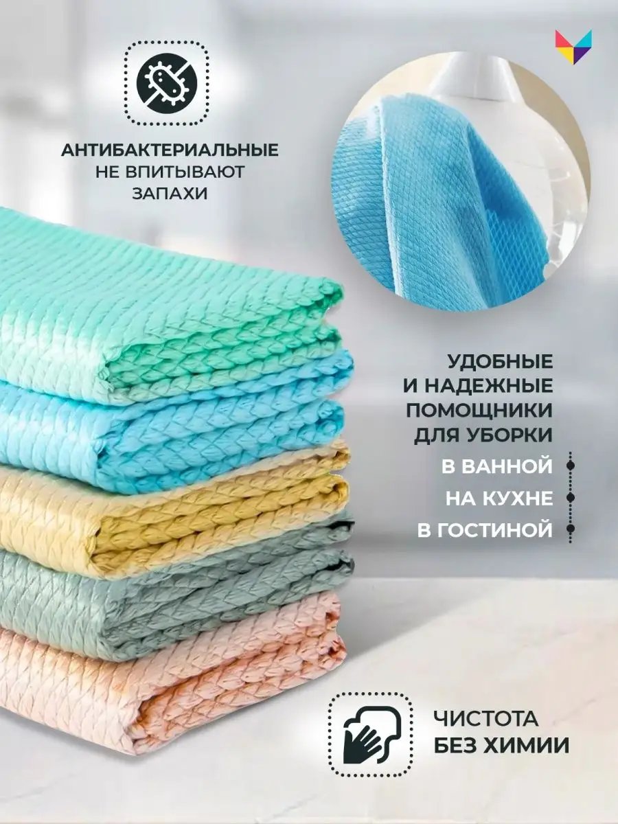 - Разные цвета: В комплект входят салфетки разных цветов, что позволяет легко выделить их предназначение или просто добавить ярких акцентов в процесс уборки.