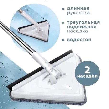 Универсальная швабра для уборки любых гладких поверхностей. С её помощью вы наведете чистоту во всей квартире – пол, стены, потолок, окна, зеркала, душевая кабинка, мебельные фасады и т.д. Такой функционал обеспечивает вращающаяся на 360º треугольная подошва, силиконовый водосгон, телескопическая ручка и две насадки (короткий и длинный ворс) из микрофибры. Для этой швабры не существует «слепых» зон – ни пылинки не останется даже в углах!