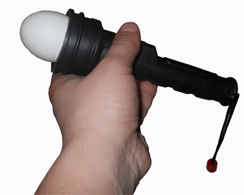 Овоскоп состоит из корпуса, в который вмонтирован выключатель питающего напряжения, светодиодного излучателя (3 сверхярких светодиода), и уплотнительного ограничительного резинового кольца, которое предотвращает попадание света лампы в глаза наблюдателя яйца, а значит улучшает видимость.