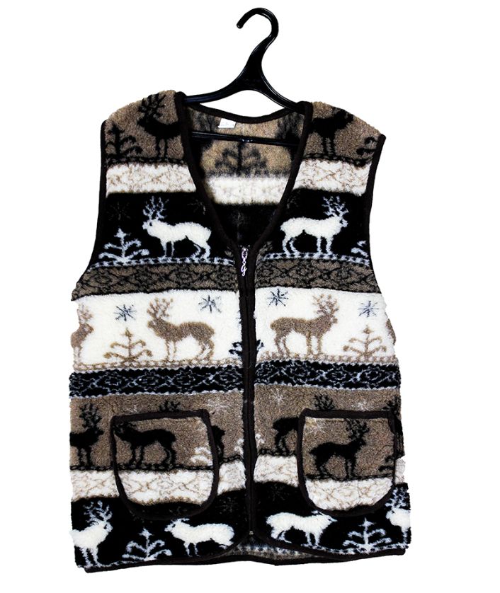 - Ворс жилета сделан из натуральной овечьей шерсти.