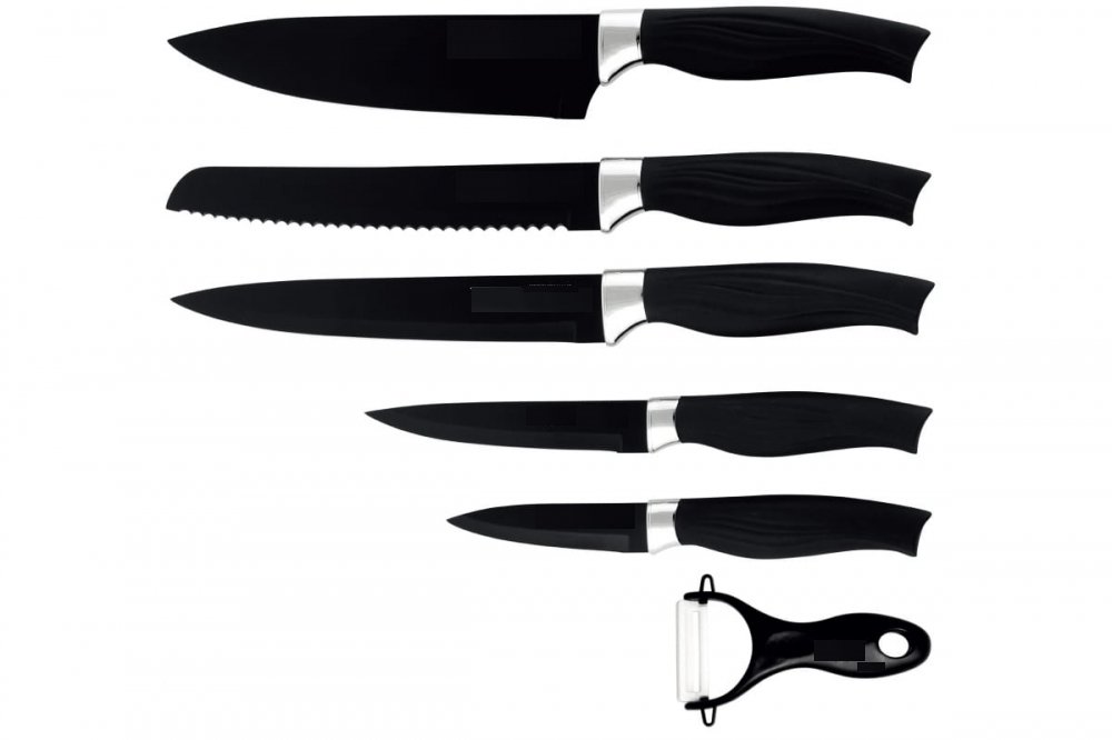 - Универсальность: С набором из пяти ножей и овощечистки вы получаете принадлежности для различных кулинарных задач, начиная от нарезки овощей и фруктов до разделки мяса.