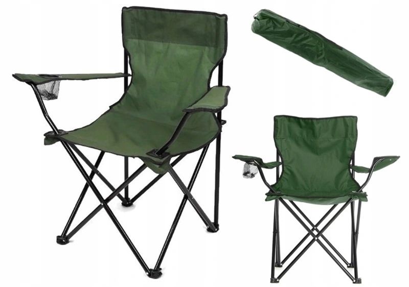 Складной стул для рыбалки, туризма и отдыха. Металлический каркас, сидение, спинка и подлокотники из брезента, кармашек-подстаканник.