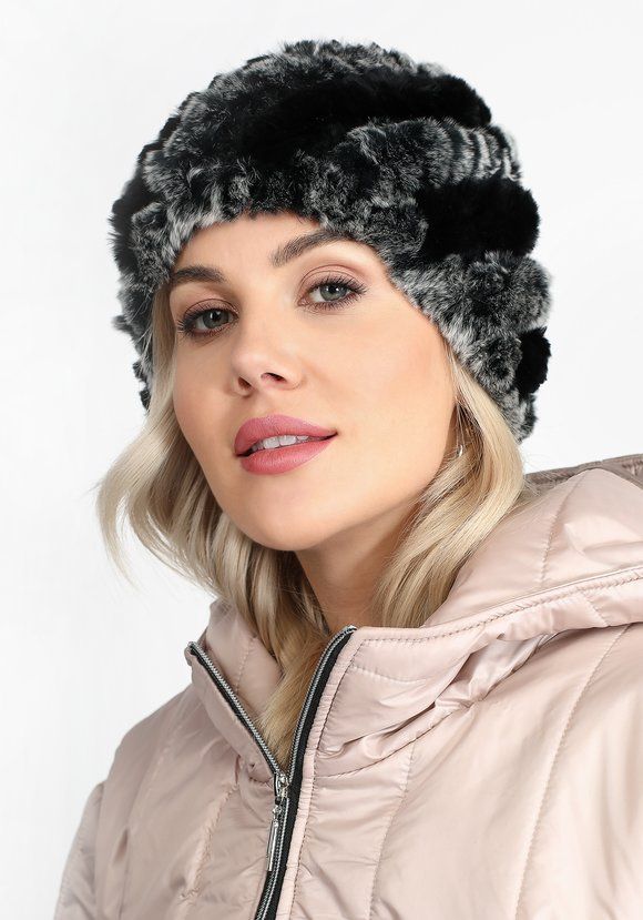 Женский головной убор из натурального меха кролика. Тепло и красиво! Четыре варианты расцветки: серый, черно-серый, коричневый и бежевый.