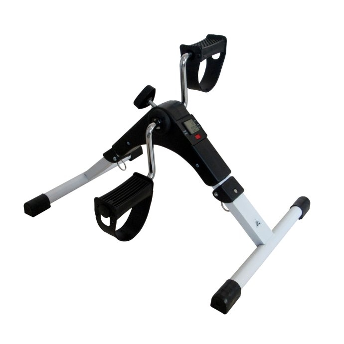 Легкий, прочный, устойчивый. Оснащен двумя педалями и винтом, который уменьшает или увеличивает нагрузку во время тренировки.